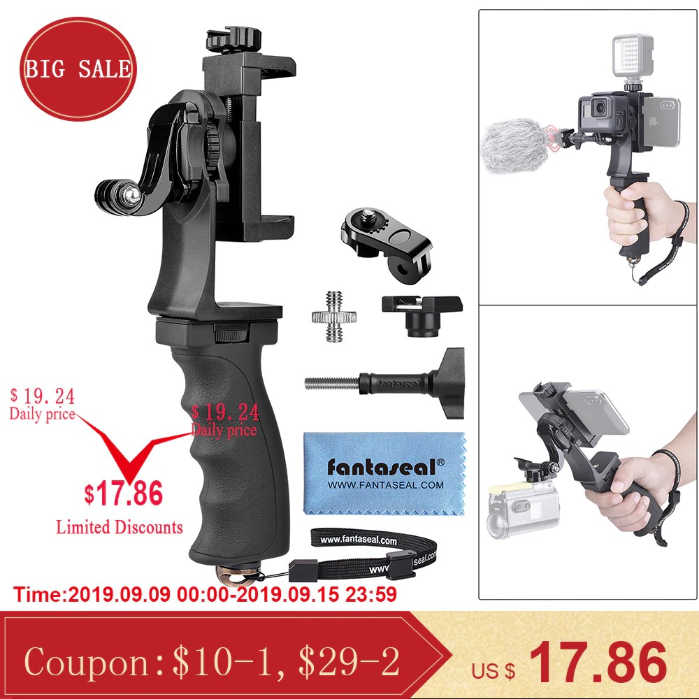Camera 2in1 Ergonomic Action Camera Hand Grip Smartphone Clip